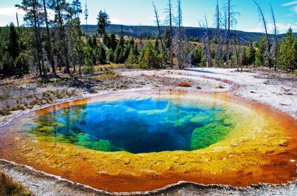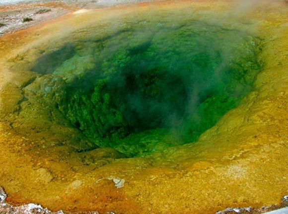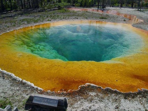 美國著名的黃石公園有數以千計的溫泉,這些溫泉碧藍澄澈,水霧蒸騰;上百個間歇泉噴射著沸騰的水柱。Morning Glory Pool溫泉在其中是最令人心馳神往的。Morning Glory Pool是熱泉,它的溫度一般是要比間歇泉低得多,所以其中能夠繁衍出豐富的藻類。Morning Glory Pool溫泉水溫在85℃時,泉內藻類為白色;82℃時呈現肉紅色;74℃時淺黃色;68℃時就變成了黃綠色。神奇之處就在于溫泉可隨著溫度的變化,顏色作隨相應的改變。
