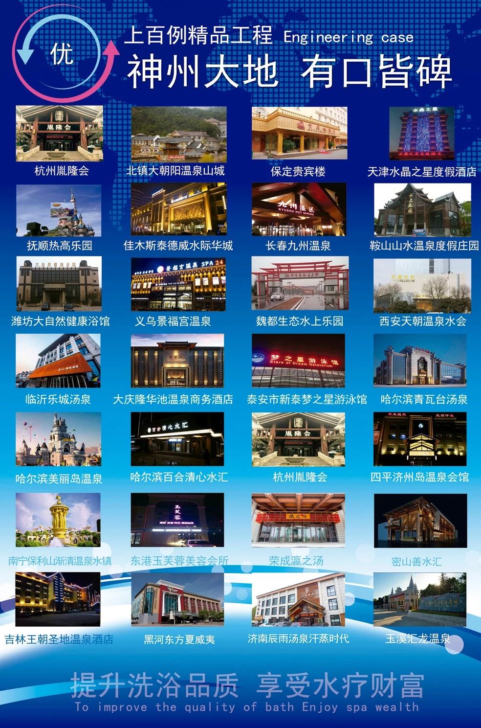 攜手共進,合作共贏。迄今為止連邦溫泉科技擁有全國700余家大中型服務客戶。合作源于信任,正是這份信任,連邦溫泉才得以結識這么多的合作伙伴。這些年來,正是由于各位的支持和幫助,連邦溫泉科技取得了長足的進步,企業的實力得到了極大的提高!沒有你們的支持,便沒有連邦溫泉科技的過去,也沒有連邦溫泉科技的現在,更不會有連邦溫泉科技的未來!“科學發展、共創和諧、服務人民、面向世界!”。讓我們共合作、求共贏,讓合作之風吹遍世界每一個角落。