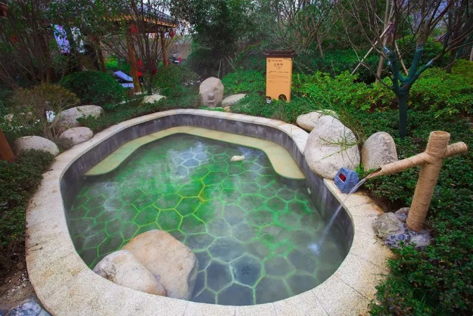 泡池掩映在郁郁蔥蔥的樹林花草間