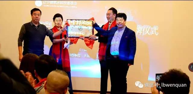 宋懷亮會長與連棟為遼寧省建筑水科技揭牌